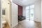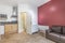 This is a freshly decorated ground floor studio apartment with French doors leading to a terrace and then garden.