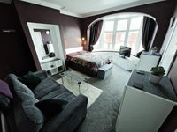SPACIOUS LOUNGE BEDROOM WITH LARGE BAY WINDOW.