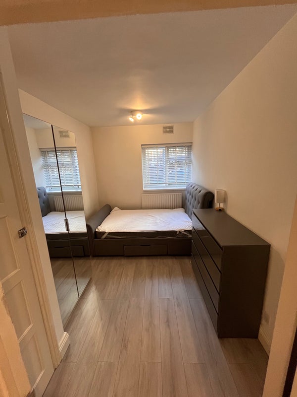 2 double bedrooms, ground floor flat available with separate kitchen and living space. Flat comes part furnished with bed, mattress, wardrobe and chest of drawers in each room. Living space also includes a large L-shaped couch.