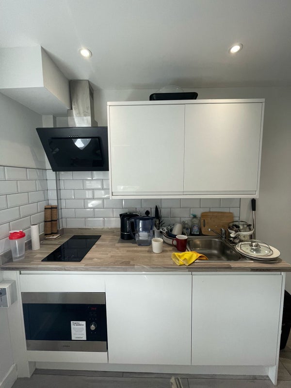 ✔️ Kitchenette: Under Counter Fridge, Sink, Microwave Oven, Hob and Kettle with Multiple cupboards.