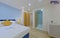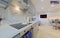 The open-plan kitchen has a range of units, fridge/freezer, washing machine, dishwasher, oven, 4-burner ceramic hob, microwave, toaster, kettle.