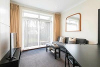 The living room has plenty of natural light because of the patio doors. There is lots of storage space thanks to the over-kitchen and bathroom cupboards. Bedroom has a large wardrobe, perfectly sized for a couple. The separate entrance felt a bit more private. Having a garden is always great, though the size of this one is a bonus and the landlord pays for its regular upkeep...perfect during the summer for relaxing and BBQ’s.