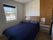 The bedroom faces the opposite side of the building, so the flat benefits from double exposure and good airflow. It has a double bed, a wardrobe with drawers and a large built-in mirrored wardrobe, offering plenty of storage.