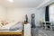This is a fantastic studio space on the lower ground floor of the building. It has living/bed space, a semi-separated kitchen fitted with oven, hobs and fridge and a private shower room in the flat. There is a large communal garden space at the back of the property and a communal laundry room. Rent includes gas and water bills.