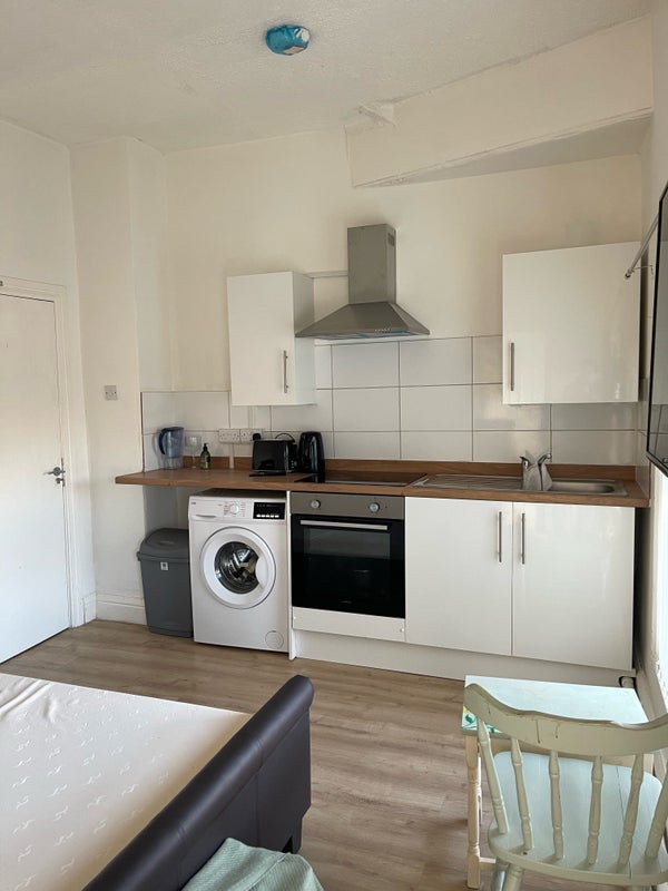 The room is fully furnished and has an ensuite with shower, tv with Netflix and YouTube etc, washing machine, drier, kettle, microwave, toaster, fridge/freezer, basically everything you’d need.