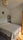 The flat is furnished and includes: double bed, chest of drawers, wardrobe, dining table and chairs, kitchen utilities (microwave), washing machine, sofa and more.