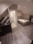 Own New bathroom with shower, WC and vanity basin en-suite. Mini kitchen corner with sink/hot water and under counter fridge. Also full size cooker and hob, washing machine dryer and tall fridge freezer in the shared kitchen.
