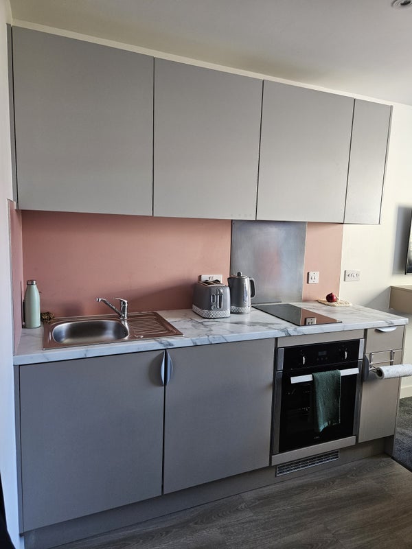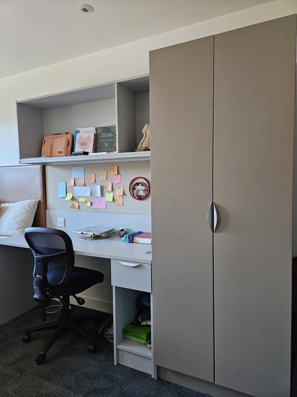 - Fully Furnished: Double bed, study area, hob, fridge/freezer, closet with drawers