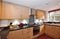 Kitchen includes an electric cooker, microwave, fridge and washing machine.