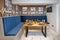 The house has amazing, shared facilities, The communal area has a bespoke upholstered seating bench in a stunning midnight navy. There is then a cut to size dining table in industrial wood. This area is perfect for eating meals and unwinding or can be used for work. There is a 32" Smart Tv also.