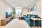 A spacious lounge with 55" TV with a Roku with a green sofa. Space for a desk. If you’d like to have live tv there is a Sky Q box but TV license would need to be paid (can send additional payment of £175 and will arrange).