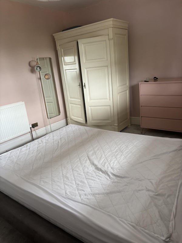 I’m Harri, I have a large double bedroom to rent in my house. The room has a double bed, TV stand, wardrobe, chest of drawers. There will be exclusive access to a downstair bathroom on the ground floor. These is a desk and chair in the room as well that can be taken out if needed.